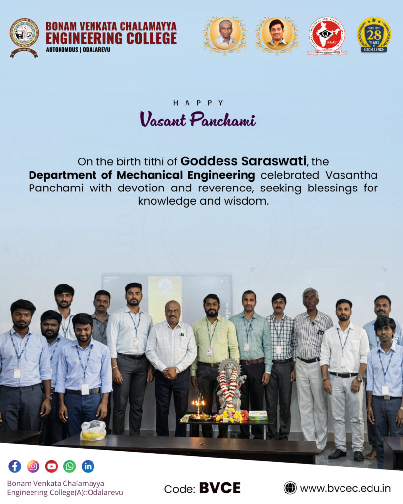 BVCE successfully celebrated Vasant Panchami, honoring Goddess Saraswati and praying for knowledge and wisdom.