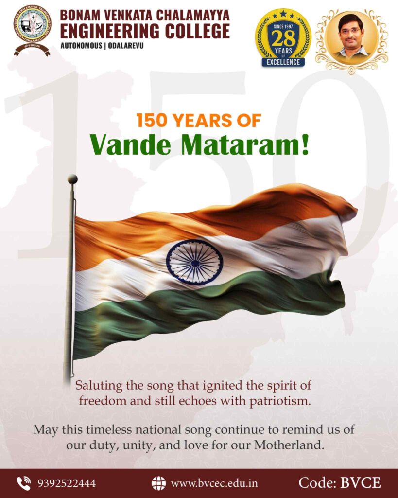 Bonam Venkata Chalamayya Engineering College (BVCEC), Odalarevu, proudly salutes the song that ignited the spirit of freedom and continues to echo with patriotism.