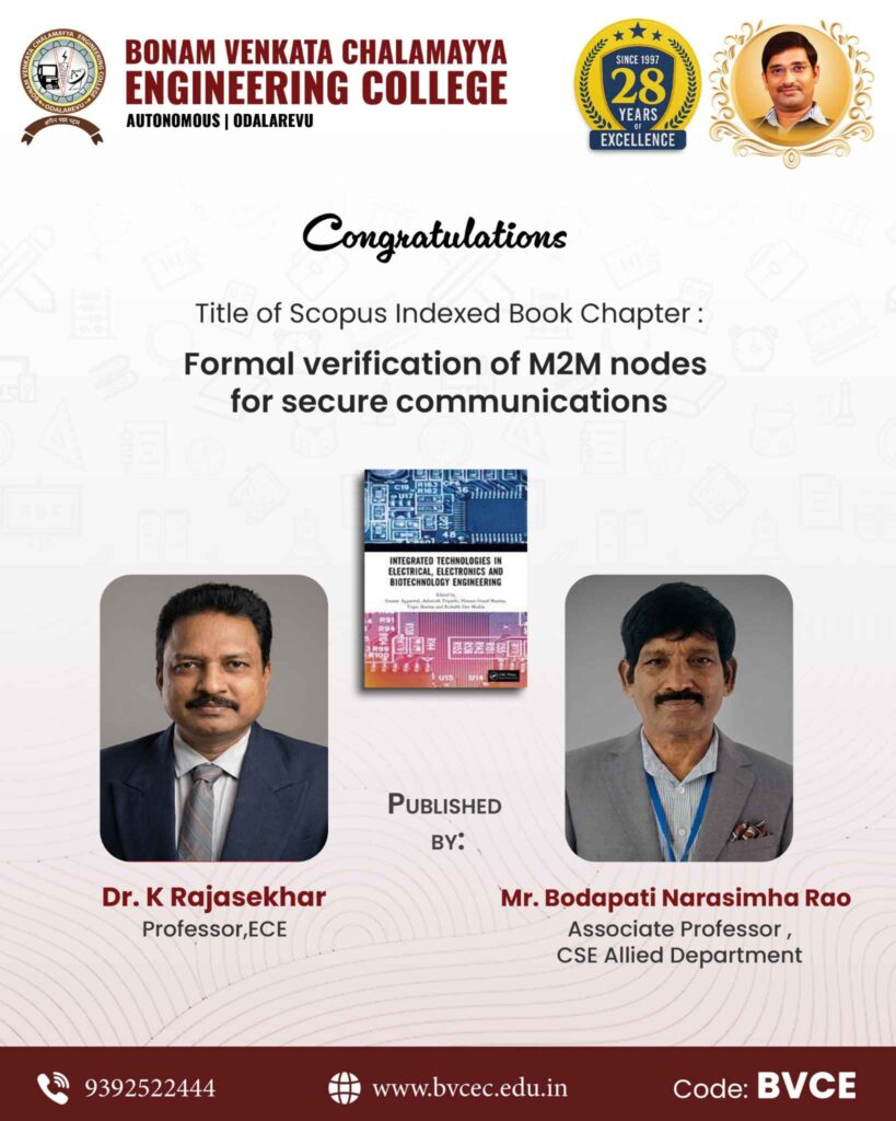 Congratulations on Scopus Indexed Book Chapter Publication by Dr. K. Rajasekhar & Mr. Bodapati Narasimha Rao