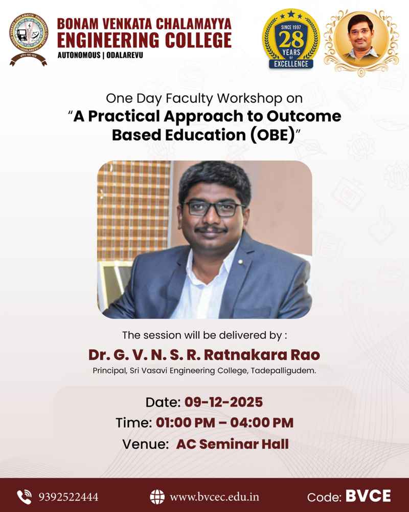 One Day Faculty Workshop on “A Practical Approach to Outcome Based Education (OBE)”by Dr. G. V. N. S. R. Ratnakara Rao on 09-12-2025