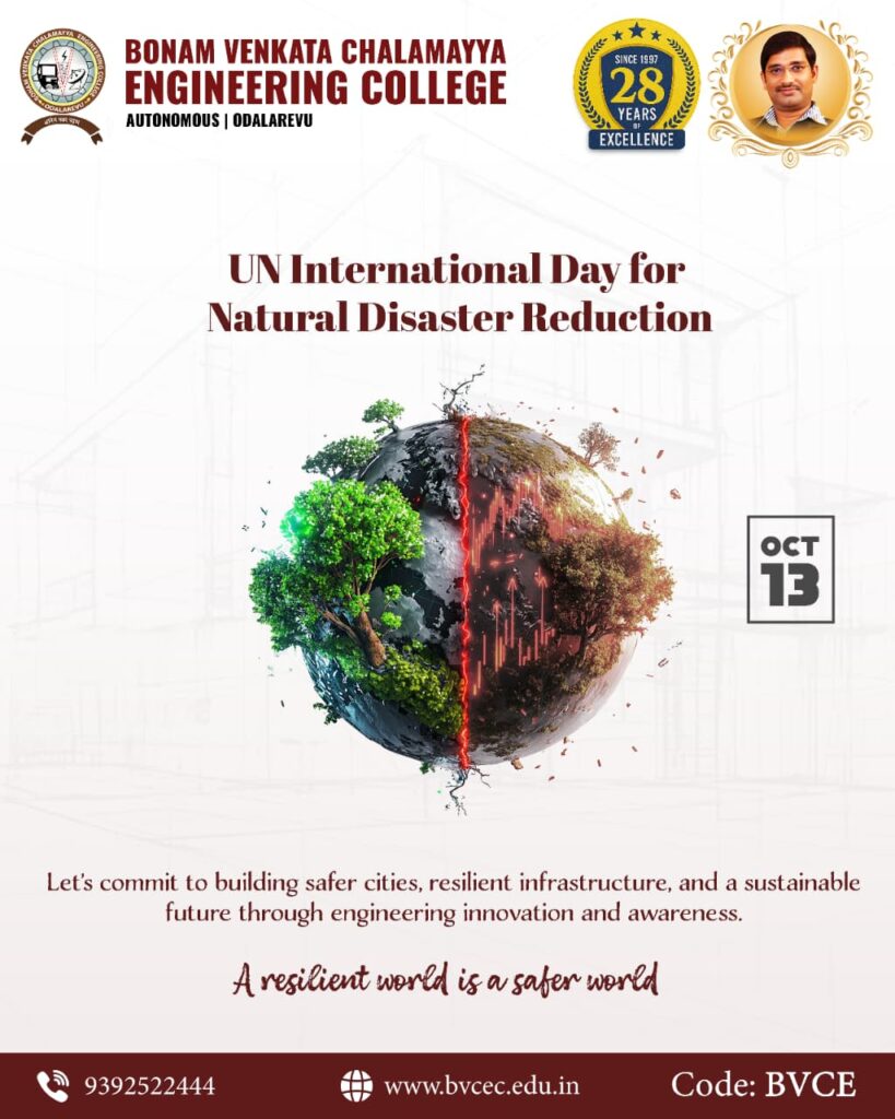 Bonam Venkata Chalamayya Engineering College observes the UN International Day for Natural Disaster Reduction on October 13.